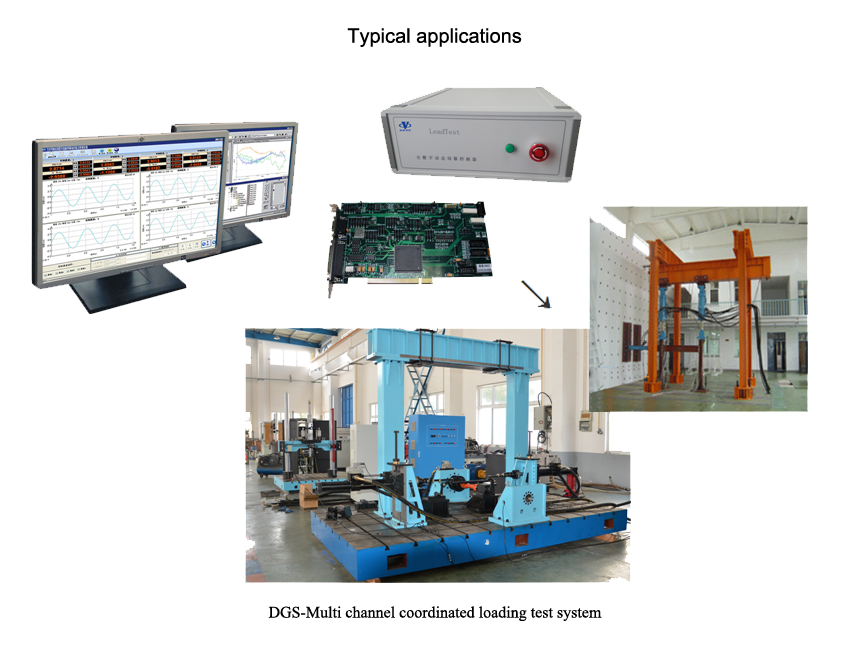 DGS- Multi channel coordinated loading test system adopts AOWEI’s LeadTest full digital dynaminc servo controller, to compose the full digital closed loop M&C system. The test system can be used in the axial, horizontal or any angle of the test system, including large parts, parts of the static low cycle and tension compression fatigue test. The test system consists of a plurality of servo actuators, a multi-channel servo controller, a servo hydraulic source and a loading frame. Each actuator can operate independently, but also a number of coordinated operation.