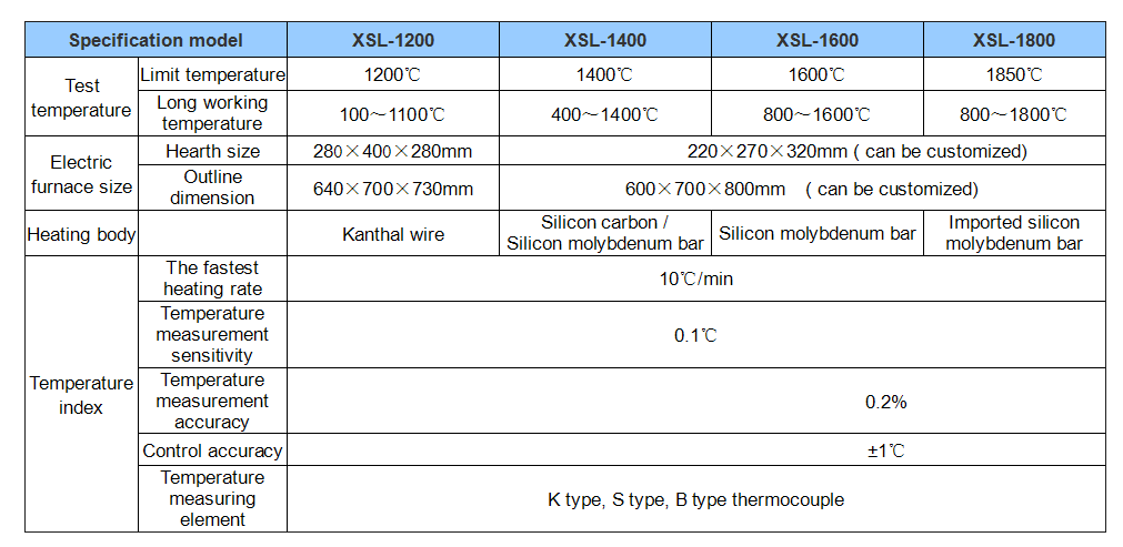 XSL series high temperature test furnace adopts the front door structure, the temperature control adopts PID fuzzy control mode, the test temperature is too small, the control precision is high. Configuration of high temperature test accessories (high temperature rod, high temperature, high temperature measuring device of chuck extension) and arm system, can be on the test machine for tensile, compression, bending test. High temperature mechanical performance test equipment of high colleges and universities, scientific research institutions, industrial materials research unit.